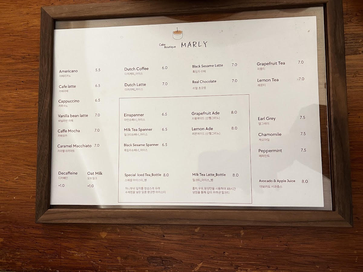 Marly offers a thoughtfully curated cafe menu that invites guests to relax and enjoy simple, comforting bites alongside carefully prepared drinks. The focus is on classic and seasonal cakes, light pastries, and a selection of teas and specialty coffee blends that match the calm and inviting atmosphere of the space.
